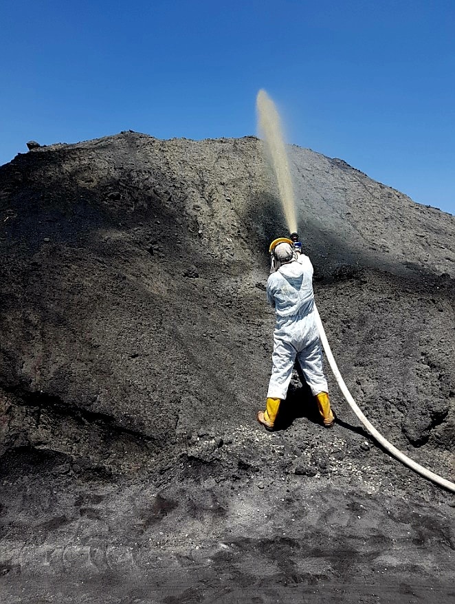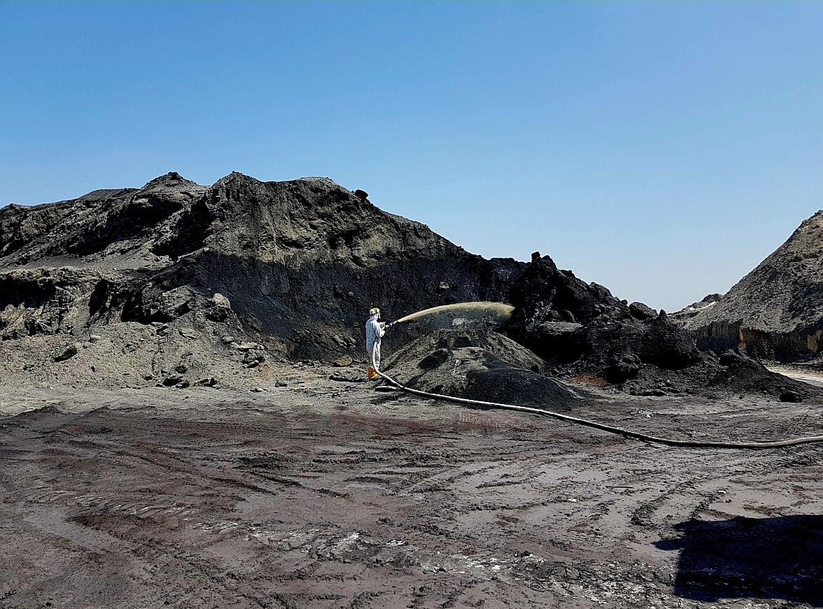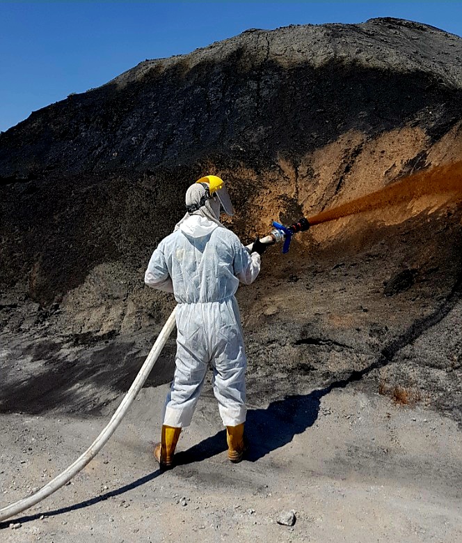 ברחבות בישוב שטרם נסללו וכן בטיפול וייצוב קרקע על גבי ערימות פחם