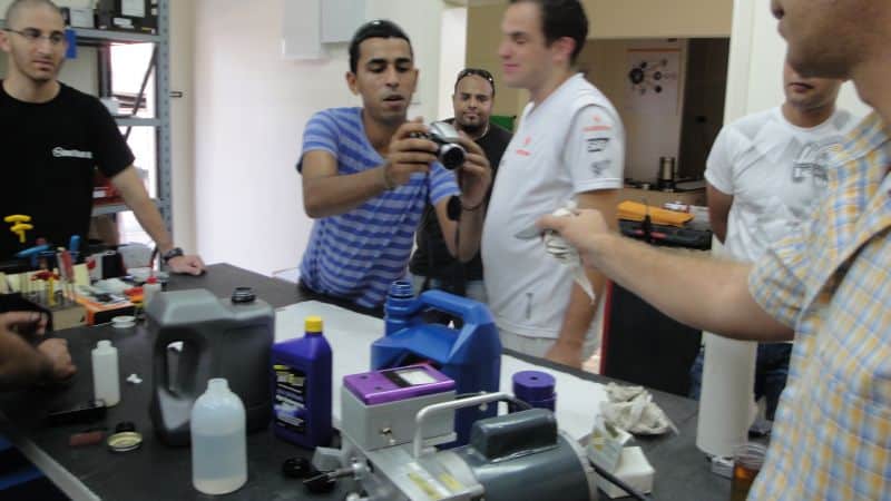 15 חברי המועדון, לקוחות נאמנים לשמן הסינתטי המעולה מבית Royal Purple צפו במצגת, שמעו הרצאה בנושא השמנים האיכותיים וקיבלו הדגמה במכונה המראה את איכותו הגבוהה של השמן הסינתטי, השפעתו המעולה על המייסבים לעומת השפעתם השוחקת של שמנים אחרים.
