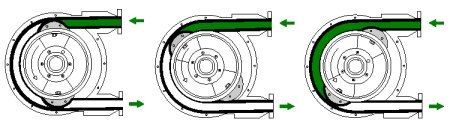 סדרת משאבות Enviroflex LM משתמשת בשיטת לחיצה של גלילים הנתמכים בצורה גמישה ולוחצים על הצינור לצורך יצירת וואקום ושאיבה.