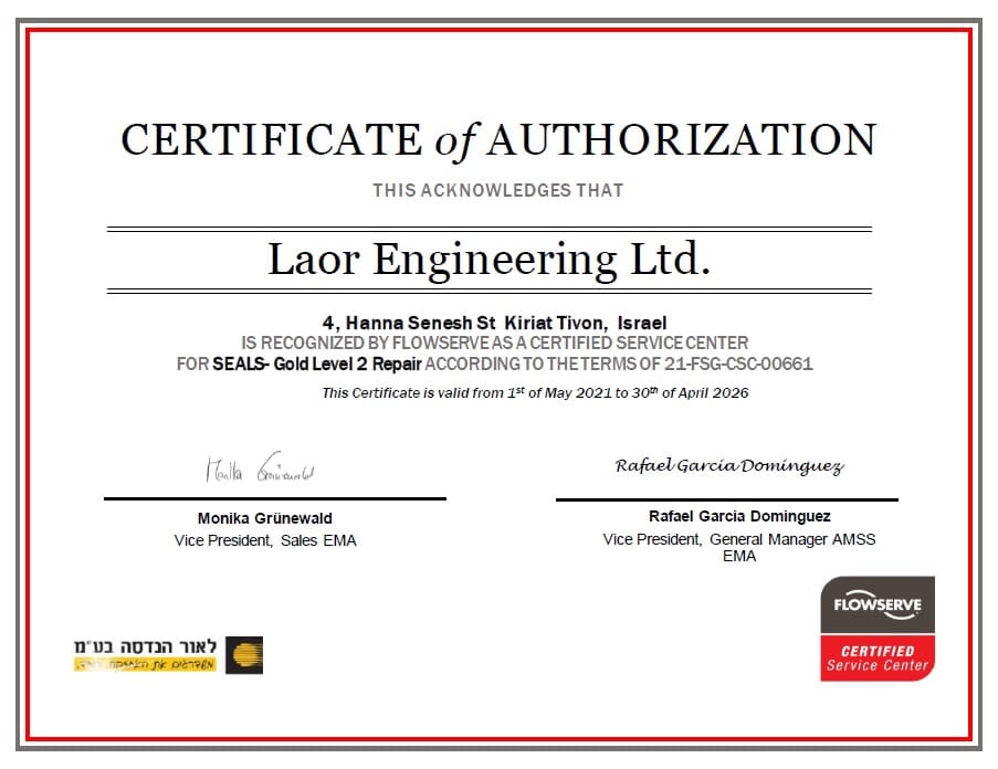 Lahor Engineering Ltd. operates an authorized mechanical seal refurbishment center, certified and supervised by Flowserve. The center also provides fast service for mechanical seals from