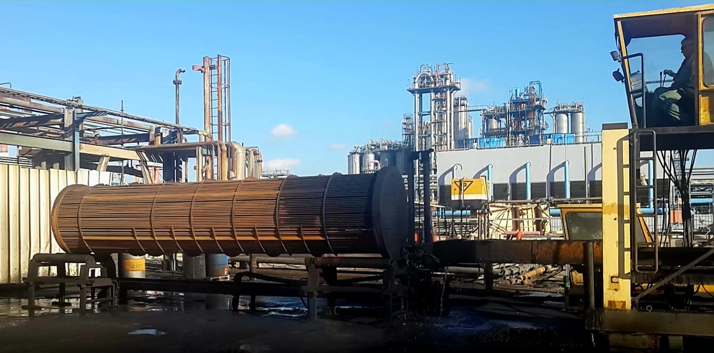Lahor Engineering Ltd. operates a machine for cleaning and washing heat exchanger tube bundles. Heat Exchanger Tube Bundle Cleaning Machine in Operation at Haifa Refineries